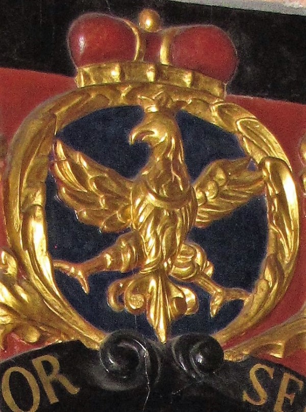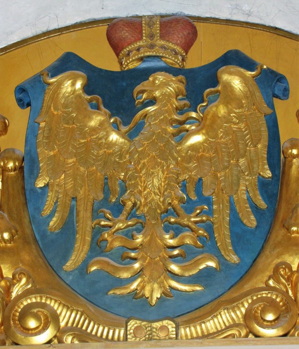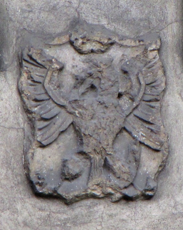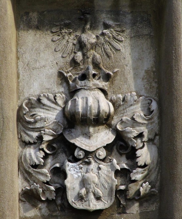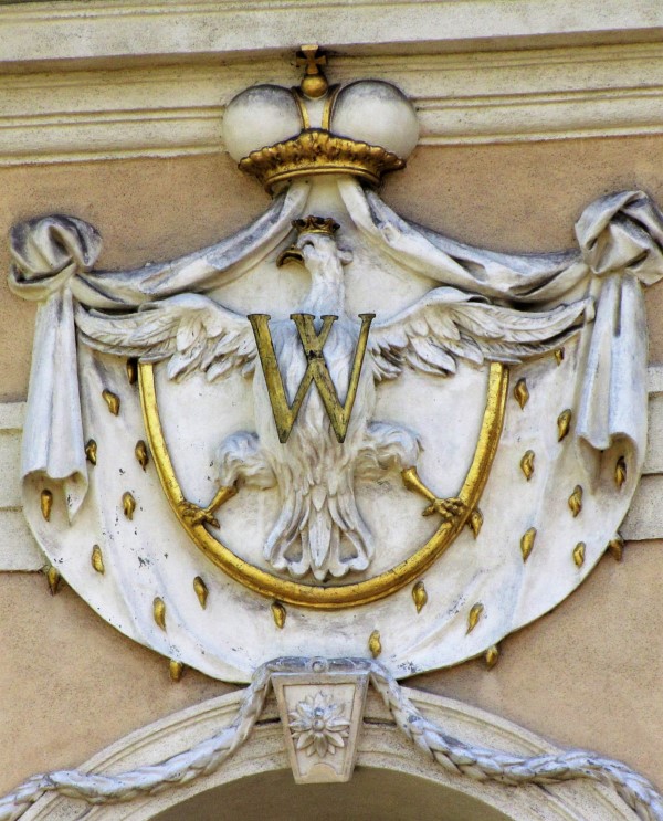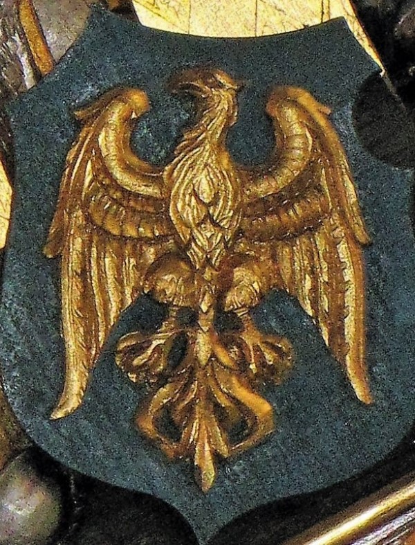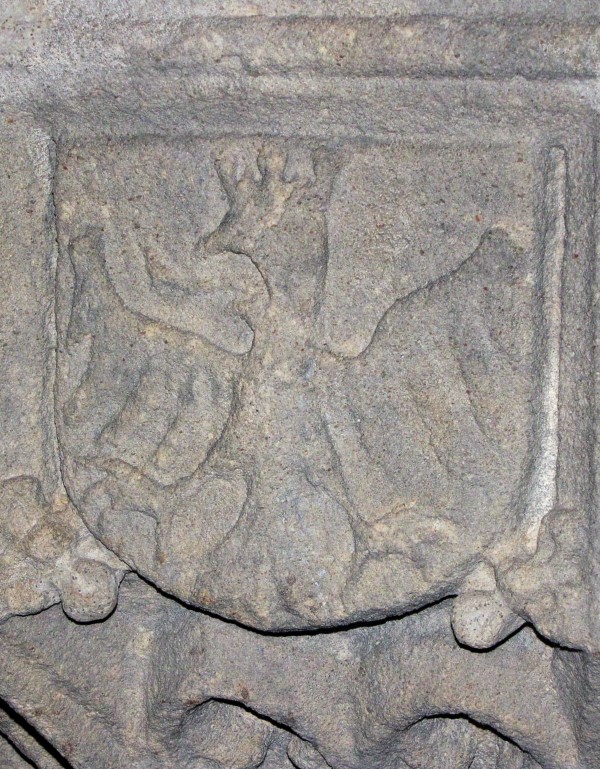 Rudy - herb księstwa opolskiego Władysława wraz "W" monogram fundatora klasztoru w Sanktuarium Matki Bożej Pokornej